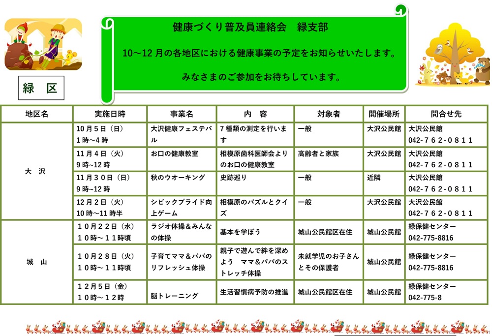 令和7年 10月 11月 12月の緑区の地区事業をお知らせします。