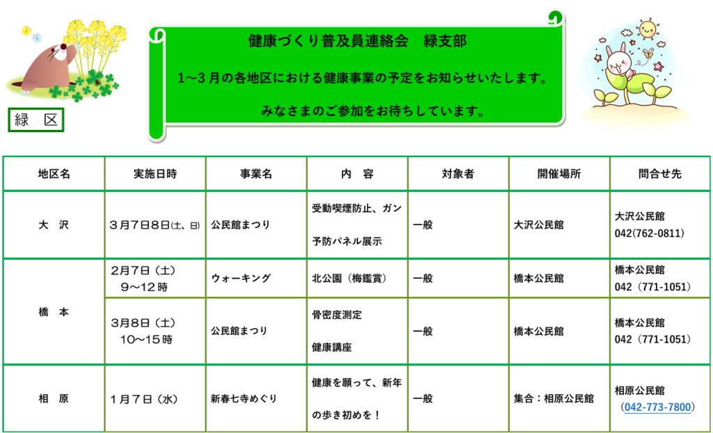 令和8年 1月 2月 3月の緑区の地区事業をお知らせします。