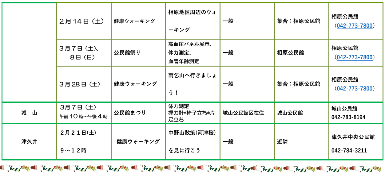 相模湖地区 リンク先:相模湖公民館&千木良公民館 ホームページ