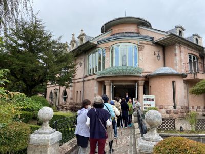 1.音楽と森の美術館の入り口の洋館に、みんなが並んで入るところ。