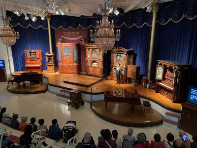 2.コンサートホール、人の背の倍くらいある自動演奏楽器が並んでいます。