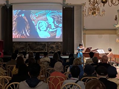 5.オルガンホール、正面のスクリーンにサンドアートが映し出されたコンサート。