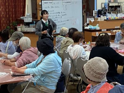 11.これからハーブ石鹸づくり、担当スタッフの説明を聞いています。