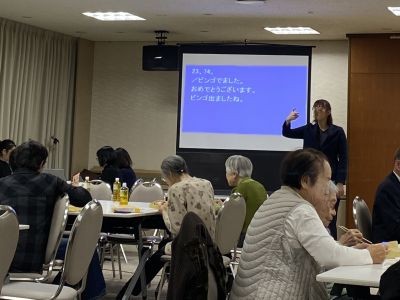 今年は打って変わって、相視協の同行ガイドさんが見事な引きを見せ、単独1位で真っ先にビンゴ!昨年のじゃんけん合戦とはまた違う、スッキリとした「一番乗り」に会場は大いに盛り上がりました。