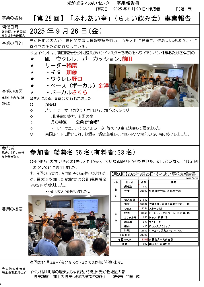 【第28回】「ふれあい亭」(ちょい飲み会) 事業報告