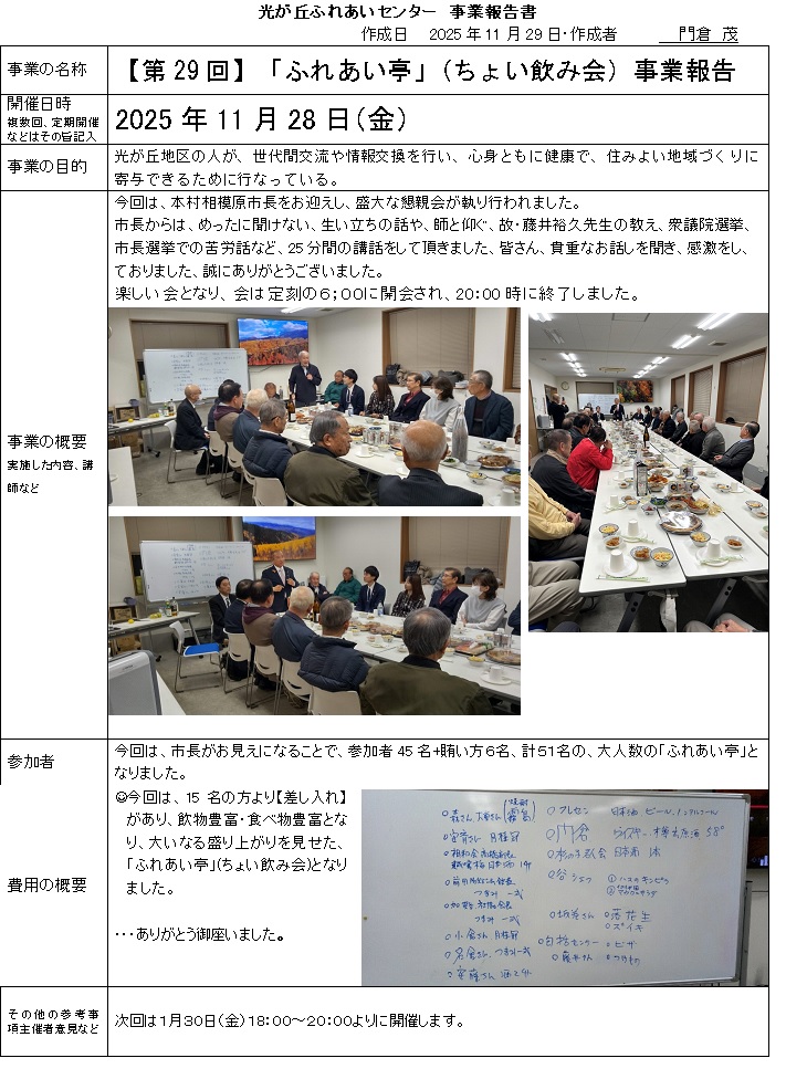 【第29回】「ふれあい亭」(ちょい飲み会) 事業報告