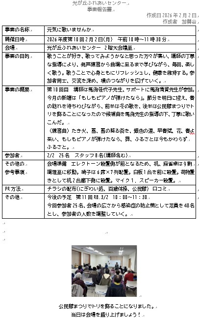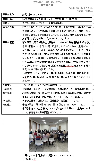 2026年度第9回1月5日(月)/第10回2月2日(月)元気に歌いませんか
