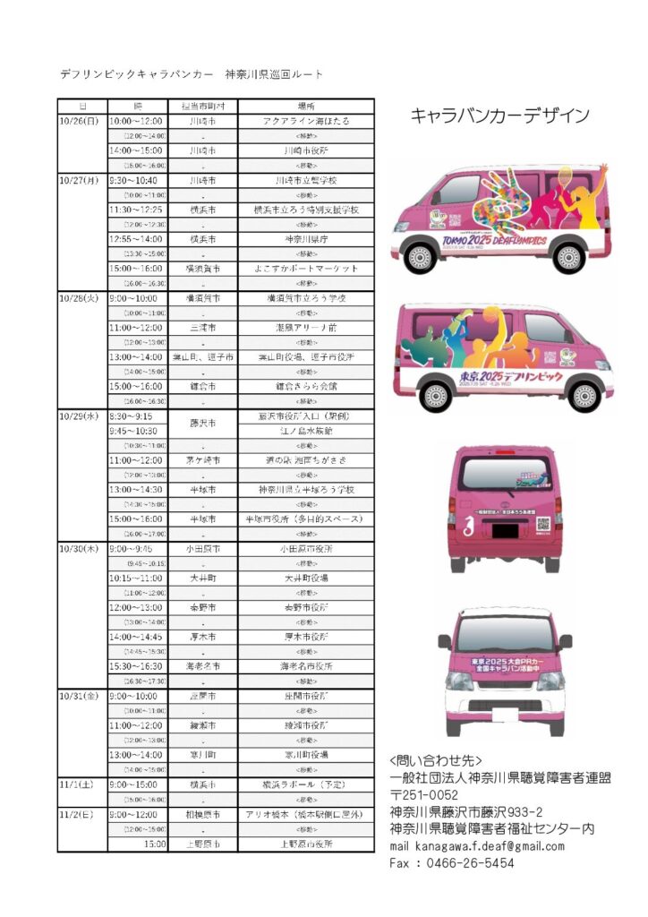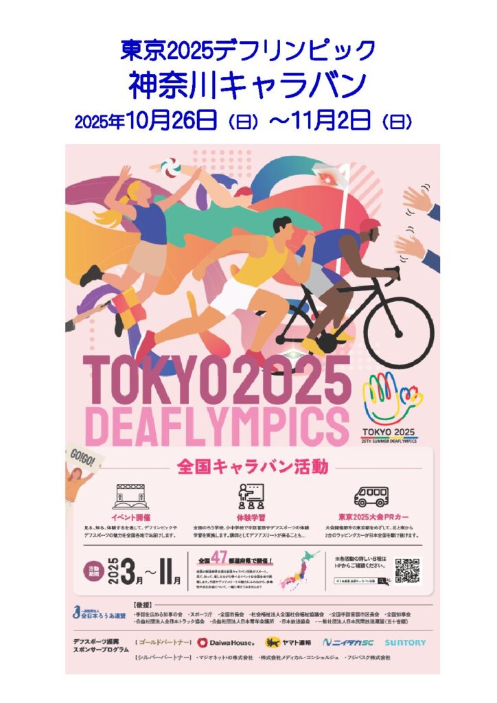 TOKYO 2025 DEAFLYMPIC キャラバンカー in 神奈川県について 2025/10/18 【カテゴリー:未分類】 Tweet Pocket 相模原市は11月2日(日)にデフリンピックキャラバンカーがやってきます。10時から12時にアリオ橋本でデフリンピックのキャラバンカーとともに展示をします。見に来て下さい 【カテゴリー:未分類】